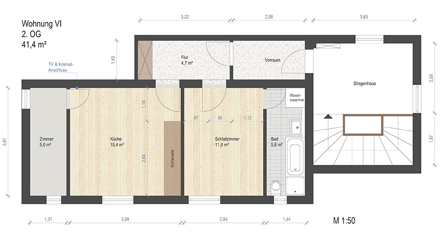 In zentraler Marktlage weden bis zu 6 Wohnungen vermietet.
